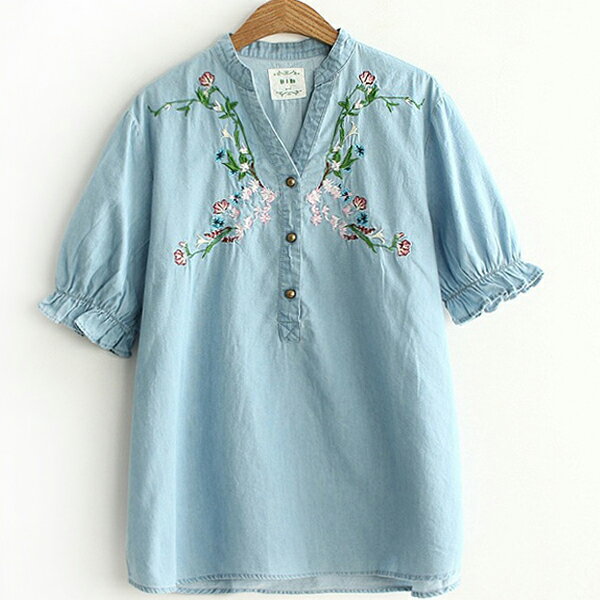 None, 襯衫 森林系刺繡牛仔上衣t恤 日糸 預購【75-12-8236】ibella 艾貝拉。在樂天市場的ibella有最棒的商品,是您省錢的最佳選擇。